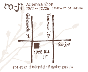 2011年10月1日-12月26日まで京都三条御幸町角1928ビル1Fにて期間限定アンテナショップをオープン致します。
